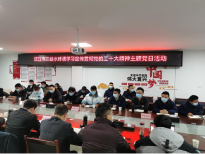 會議集中學習了黨的二十大報告相關內容,圍繞高質量建設沅江項目進行了專題討論。會議強調,全體黨員干部要深刻領悟黨的二十大精神的重要指導意義,帶動周邊群眾掀起學習黨的二十大精神熱潮,自覺將黨的二十大精神運用于長江大保護實踐。會議要求全體干部職工要提高站位,不斷優化管理流程提升效能,以釘釘子精神推動沅江項目年度目標順利完成。