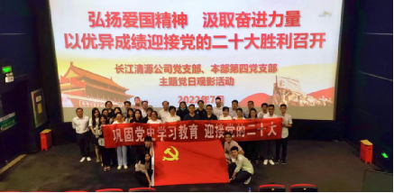 圖為7月26日,長江清源公司黨支部與本部第四黨支部聯(lián)合開展“弘揚(yáng)愛國精神 汲取奮進(jìn)力量”主題黨日觀影活動,組織全體黨員和青年員工觀看愛國主義電影。
