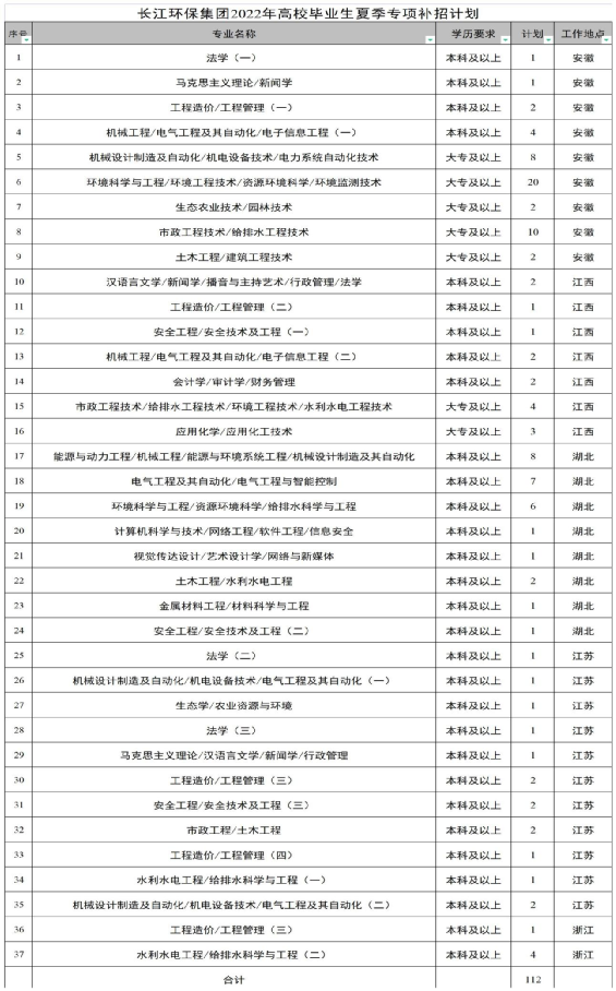 長江生態環保集團有限公司2022年高校畢業生夏季專項招聘公告