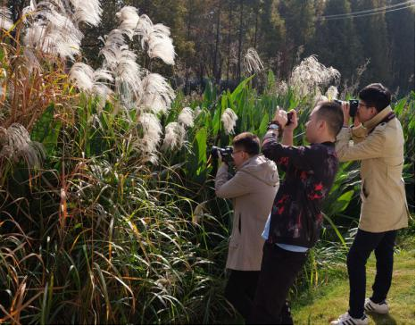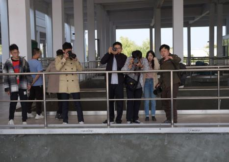 攝影愛好者在江東水生態公園進行攝影練習? 拍攝:肖佳法