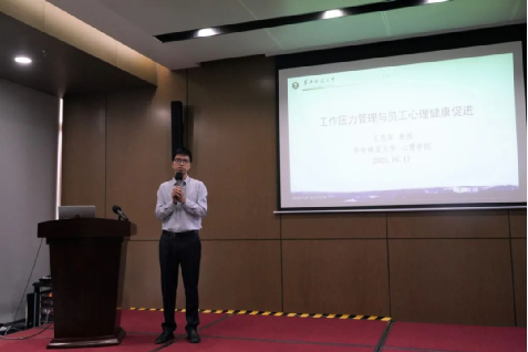 王教授針對大家在職業發展、人際交往等方面的壓力與困惑,從壓力探源、壓力調適、壓力管理等3個角度為職工講授了一堂生動有趣的心理健康知識講座,幫助員工進行壓力情緒管理與心理健康維護。