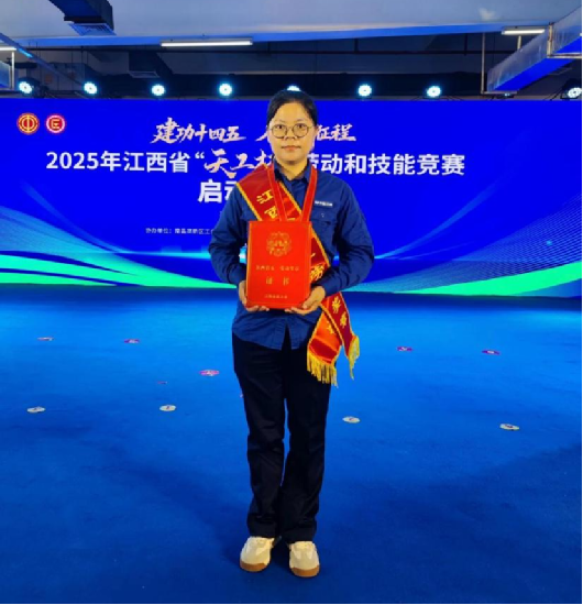 在2024年江西省“天工杯”長(zhǎng)江大保護(hù)勞動(dòng)和技能競(jìng)賽中,胡孝備參加了水質(zhì)檢測(cè)項(xiàng)目。在理論考核和實(shí)操檢測(cè)兩個(gè)環(huán)節(jié)中,她憑借扎實(shí)的專業(yè)功底和出色的臨場(chǎng)發(fā)揮,從全省眾多選手中脫穎而出,以水質(zhì)化驗(yàn)檢測(cè)項(xiàng)目總分第一的好成績(jī)摘得桂冠。因成績(jī)優(yōu)異,胡孝備被江西省總工會(huì)授予2024年“天工杯工匠”榮譽(yù)稱號(hào)。