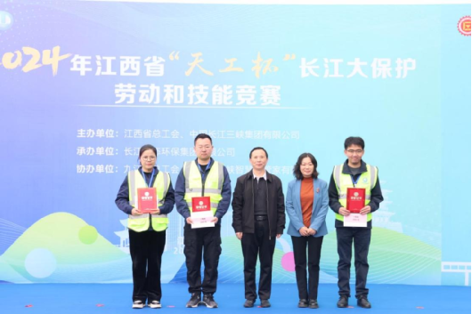 2024年江西省“天工杯”長(zhǎng)江大保護(hù)勞動(dòng)和技能競(jìng)賽一等獎(jiǎng)合影(左一:胡孝備) 照片來(lái)源:江西省總工會(huì) 龔玉磊